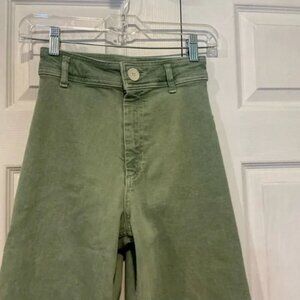 Zara Green Wide Leg High Waisted Flare Jeans - Size 0