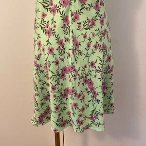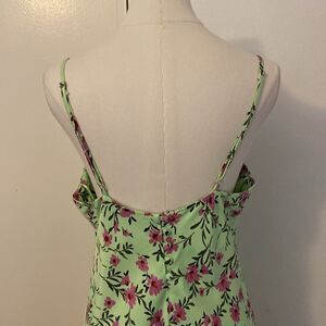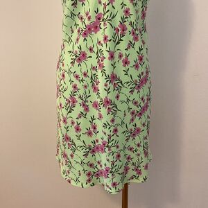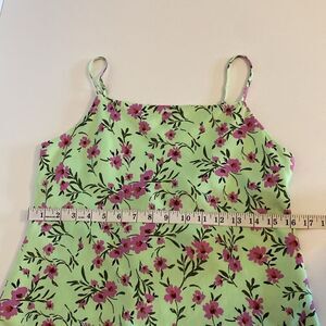Zara Green and Pink Floral Satin Effect Mini Slip Dress Size L