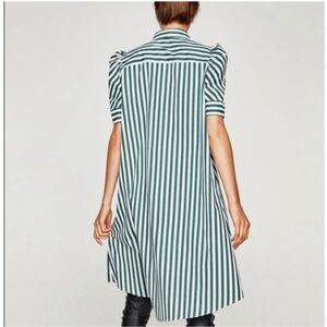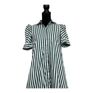 Zara Green and White Striped Shirt Tunic Style Dress xs‎