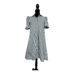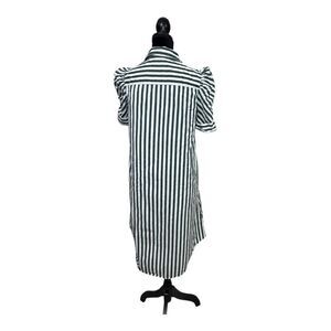 Zara Green and White Striped Shirt Tunic Style Dress 1825