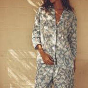 Zara Green and Wight Wide Leg Patterned Pants and Shirts Size S