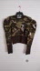 EUC, adorable camouflage cropped sweater with ruffled shoulder detailing and metallic and silver sequins. very soft fabric, the fabric tag is missing.