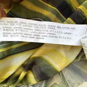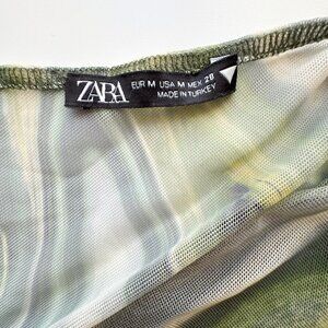 Zara Green printed tulle top asymmetric sleeves & neckline Medium