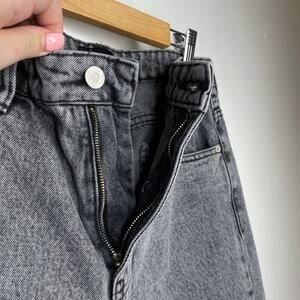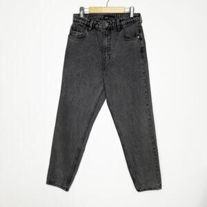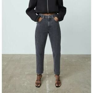 Zara Light Grey Charcoal Acid Wash High Waisted Straight Leg Mom Boyfriend Jeans