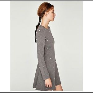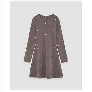Zara Grey Knit Allover Pearl A-Line Dress M