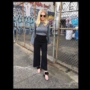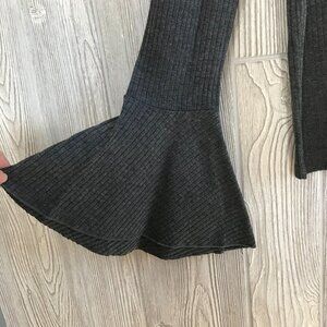 Zara TrafaLuc Heathered Gray Long Bell Sleeve Ribbed Top Size Medium