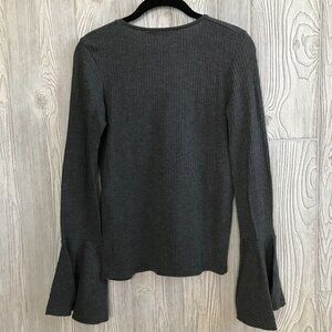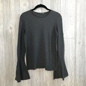 Zara Grey Long Bell Sleeve Ribbed Crew Neck Top - Medium