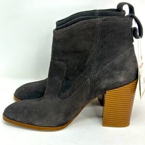 Zara Grey Suede Leather Stacked Heel Pull On Booties