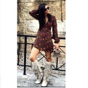 Stylish, Zara Trafaluc suede fringe tall boots. Perfect for a trendy look.