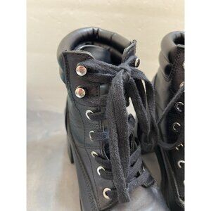 Zara Grunge Goth Bikercore black platform stack-heeled lace-up combat boots 39 8