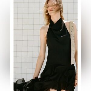 Zara Halter Ruffled Maxi Dress