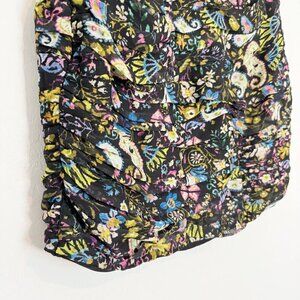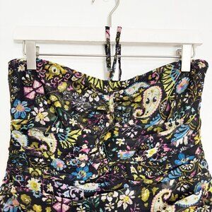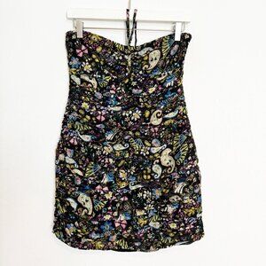 Zara Halter Tie Smocked Ruched Strapless Bodycon Floral Mini Dress Size Small