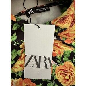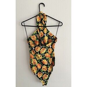 Zara Halter Top Bodysuit Size Small S Black Yellow Green Floral Twist Neck