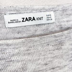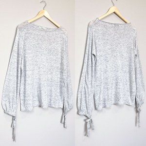 Zara Heather Gray Long Bow Tie Strap Cuff Balloon Sleeves Light Weight Sweater S