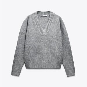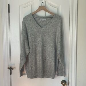 Zara | Heather Gray V-Neck Cozy Pullover Knit Sweater Medium Classic Fall