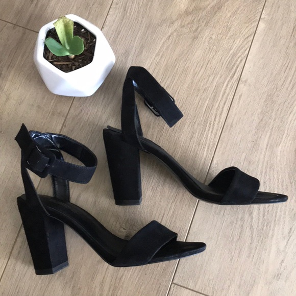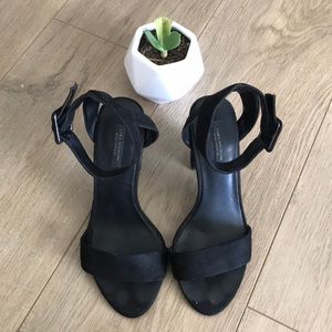 Black suede-like Zara strappy heels. In great condition minus the scuff mark on the right heel. Worn a few times and still has a lot of life left. Fits true to size. I ship same day or next business day!