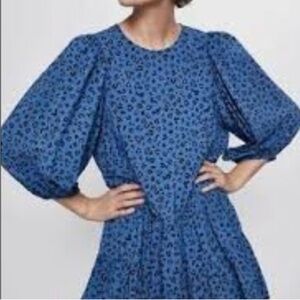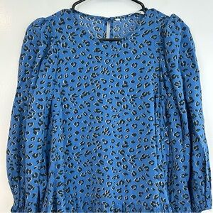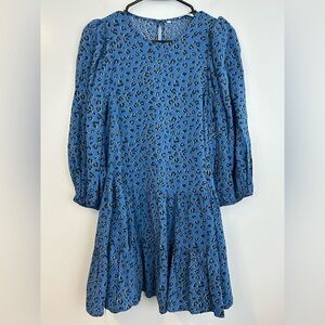 Zara Helene Blue Leopard Print Long Sleeve Ruffle Mini Dress Size Small