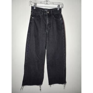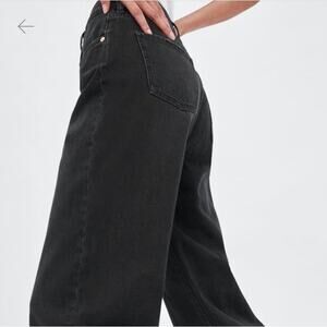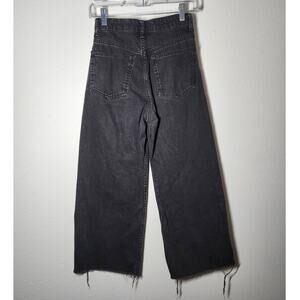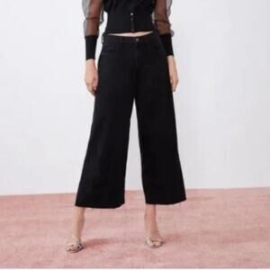Zara Hi Rise Cropped Culotte Jean Unfinished Raw Hem Wide Leg Denim Washed Black