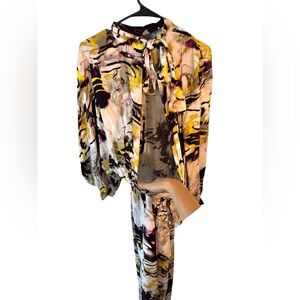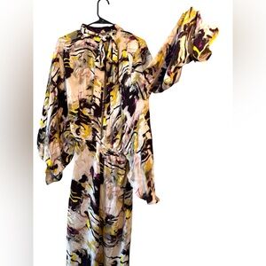 Zara High Neck Long Sleeve Printed Marble Asymmetrical Maxi Dress Size Medium