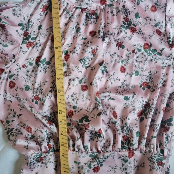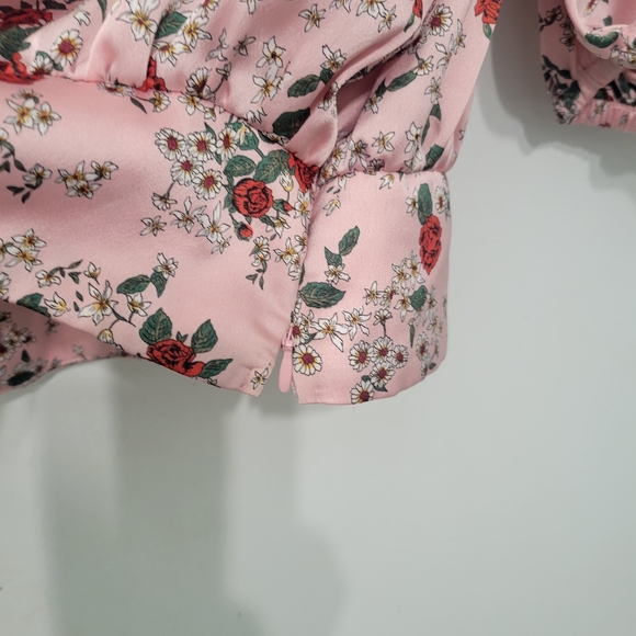 Zara High Neck Pink Floral Puff Sleeve Top Size M