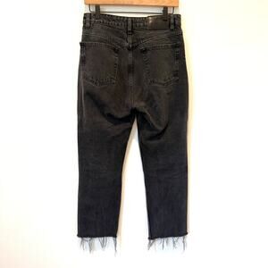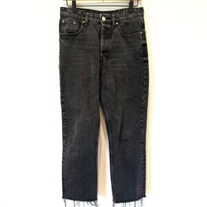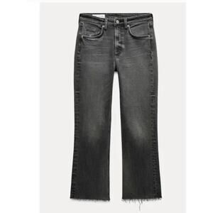 Zara High Rise Button Fly Raw Hem Cropped Washed Black Denim Jeans Size 6