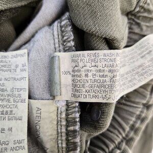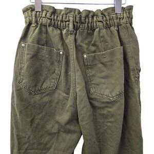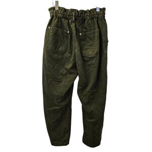 Really cute olive green paper bag waist jeans that have front pockets and large back pockets. All the streetwear vibes.