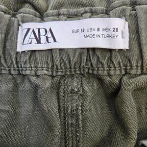 Zara High Rise Cropped Paper Bag Waist Tapered Jeans Size 6