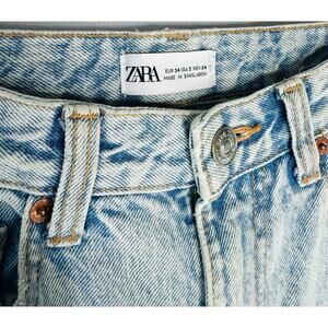 Zara High Rise Distressed Straight Leg Light Wash Jeans Size 2