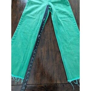 Zara High Rise Green Jeans Woman Sz 6 Fray Hem Wide Straight Leg Pockets Boho