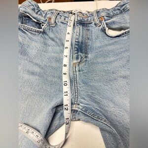 Fit: Mom fit, which typically features a high rise, a relaxed fit through the hips, and a tapered or straight leg.