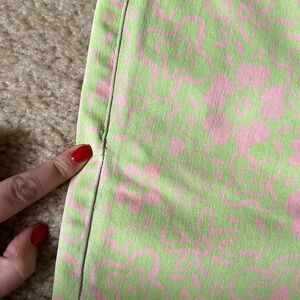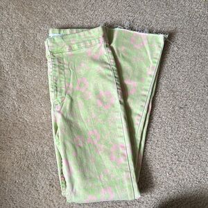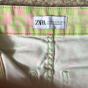 Zara High Rise Kick Flare Lime Green and Pink Floral Print Mod Jeans Size 4