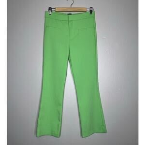 Zara High Rise Kick Flare Pants Neon Green Size Medium Retro Minimalist Trousers