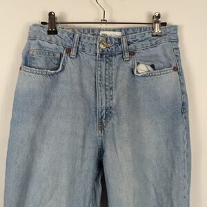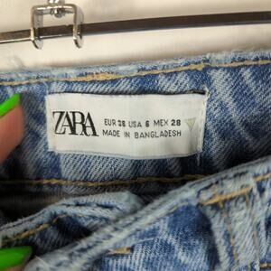 Zara High Rise Light Wash Destroyed Straight Leg Distressed Ripped Jeans Size 6