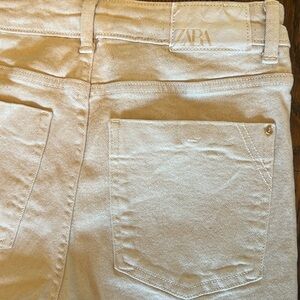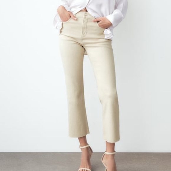 Zara high rise mini flare jeans in ecru. Excellent condition! 26” inseam
