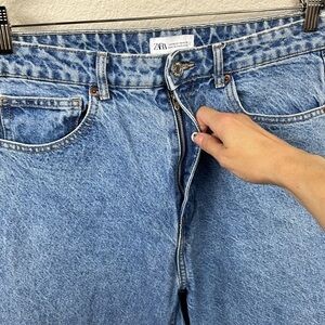 Zara High Rise Mom Jean Ankle Retro Acid Wash Rigid Denim Sz 10