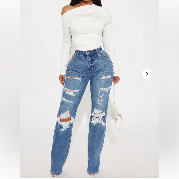 Stylish high-rise jeans with a ripped design. Perfect for a trendy look. Size 11