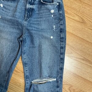 Stylish high rise jeans with ripped accents. Ideal for everyday wear. Comfortable fit.