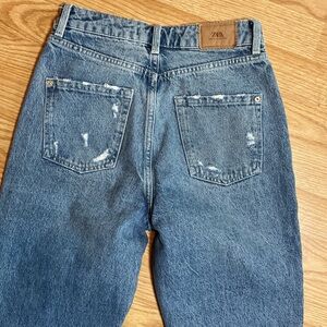 Zara High Rise Ripped Denim Jeans