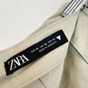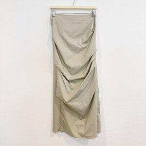 Zara High Rise Ruched Long Maxi Skirt Slit Minimalist Boho Contemporary Tan XS
