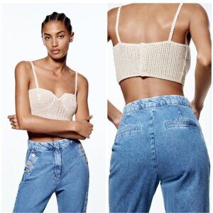 Zara High Rise Sailor Button Slant Pocket Jeans Vintage Wash Straight Leg Sz S