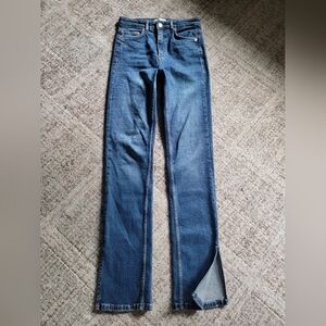 Zara High Rise Slim Fit Straight Leg Jeans Split Hem Size 26 Tall