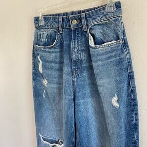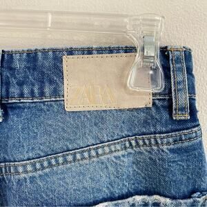 Zara High Rise Straight Leg Ripped Jeans Size 4 100% Cotton Mom Fit Cropped