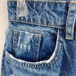 Zara High Rise Straight Leg Ripped Jeans Size 4 100% Cotton Mom Fit Cropped