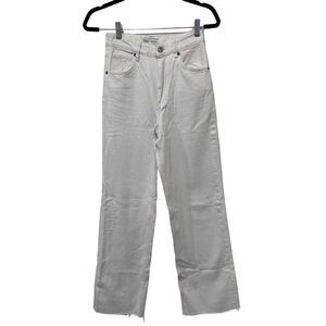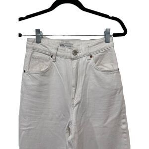 Zara High Rise Straight Leg Zip Fly Raw Cut Off Hem Cotton Mom Jeans White Size 2