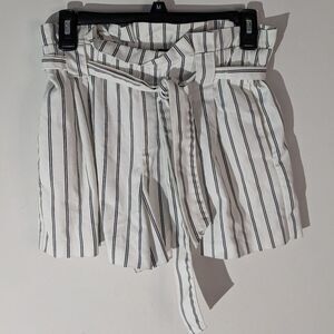 Zara High Rise Striped Paper Bag Waist Shorts