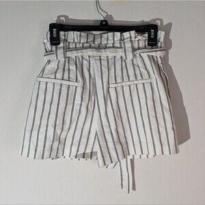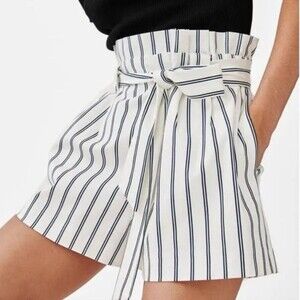 Zara High Rise Striped Paper Bag Waist Shorts Women's Size XS