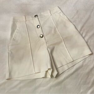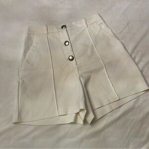 Zara High Rise Waisted Ecru Cream Button Front Seam Pleated Shorts Size Medium