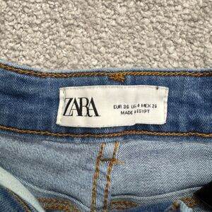 Zara High Waist Skinny Denim Jeans Womens 4 Sunrise Blue Distressed Hem 24x28