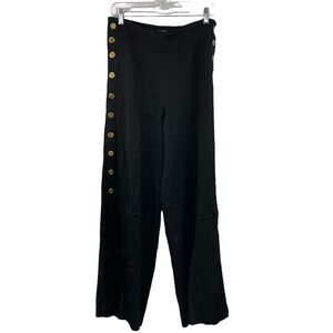 Zara Pants Womens Size Medium Black Side Gold Buttons High Waist Wide Leg