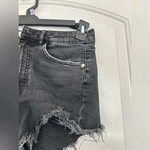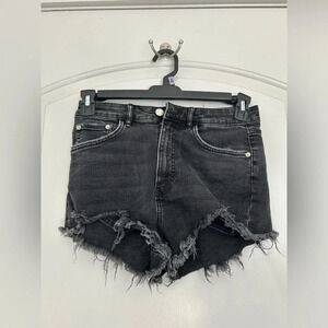 Zara High Waisted Black Denim Frayed Hem Shorts size 4